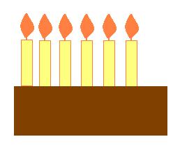 Az ábrán levő tortát meg tudjuk rajzolni az eddig tanultak alapján is, de észrevehetjük, hogy a hat gyertya teljesen egyforma. Így a torta megrajzolása után egy gyertyát is elegendő megrajzolnunk, majd ezután ötször le kell másolnunk a megfelelő helyre.