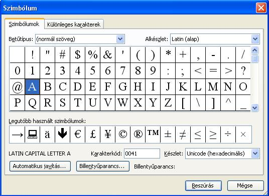 Válasszuk a Beszúrás menü Szimbólum parancsát!