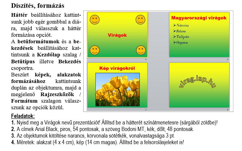 - A diára ne írjunk fel minden szót, a túl sok szöveg, kép nehezíti az áttekintést, érthetőséget, ezért fárasztó.
